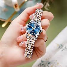 - Add a touch of glamour to dressy evenings with this watch featuring a rose gold dial, raised gold indices, and skeletal hands. The blue and purplish stones over the bracelet add a hint of sparkle, while the dainty linked bracelet enhances the elegance. Style it with a cocktail dress or an evening gown for a chic and sophisticated look.